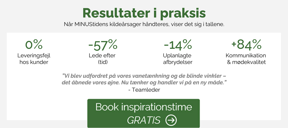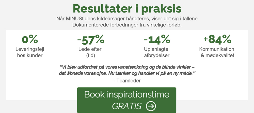 Vi hjælper jer med at omdanne MINUStid til PLUStid. Resultatet er mere fokus, bedre flow og stærkere trivsel – uden at øge presset på medarbejderne.